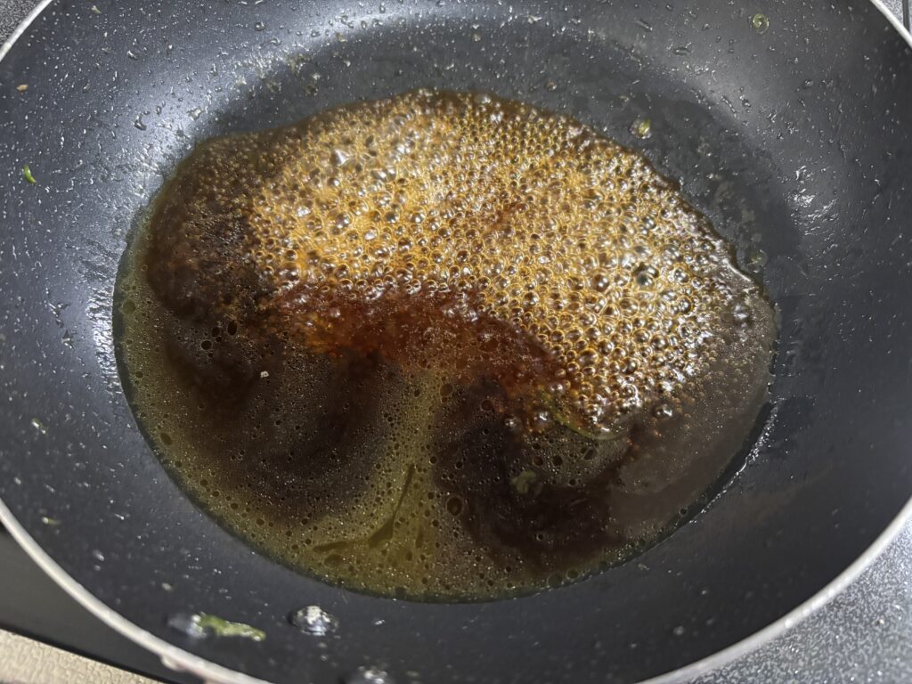 - 調味料Bを入れ、少し煮詰めてタレを作ります。