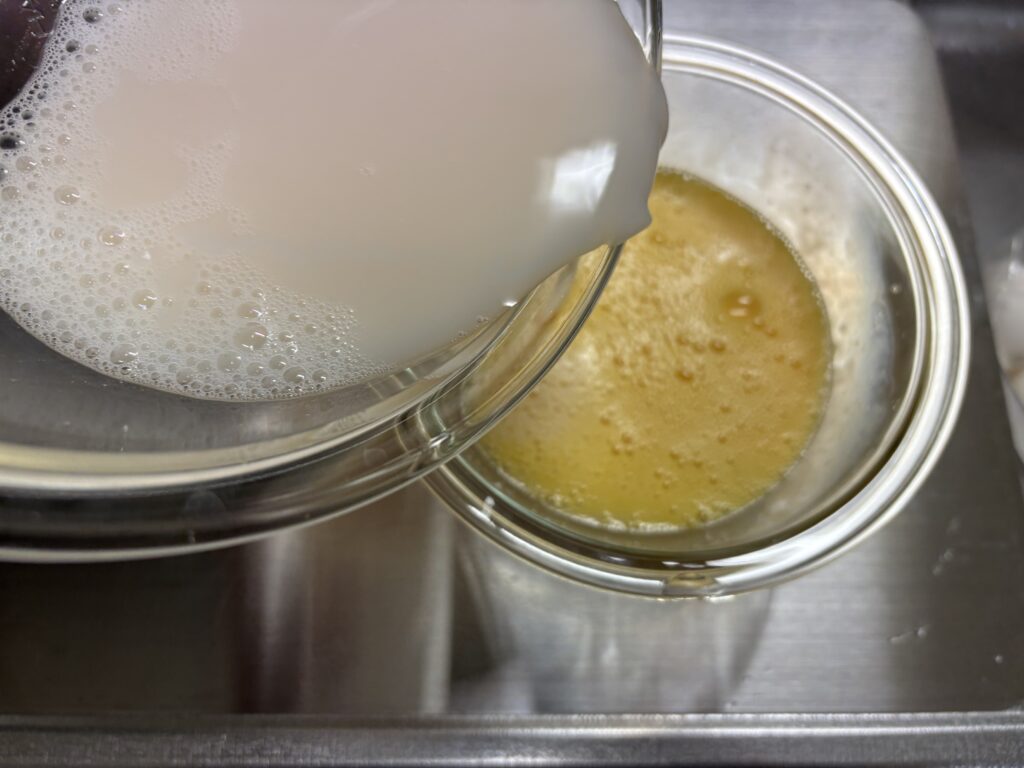 👉卵液は混ぜすぎないこと。泡立つと「す」が入りやすくなります🙇