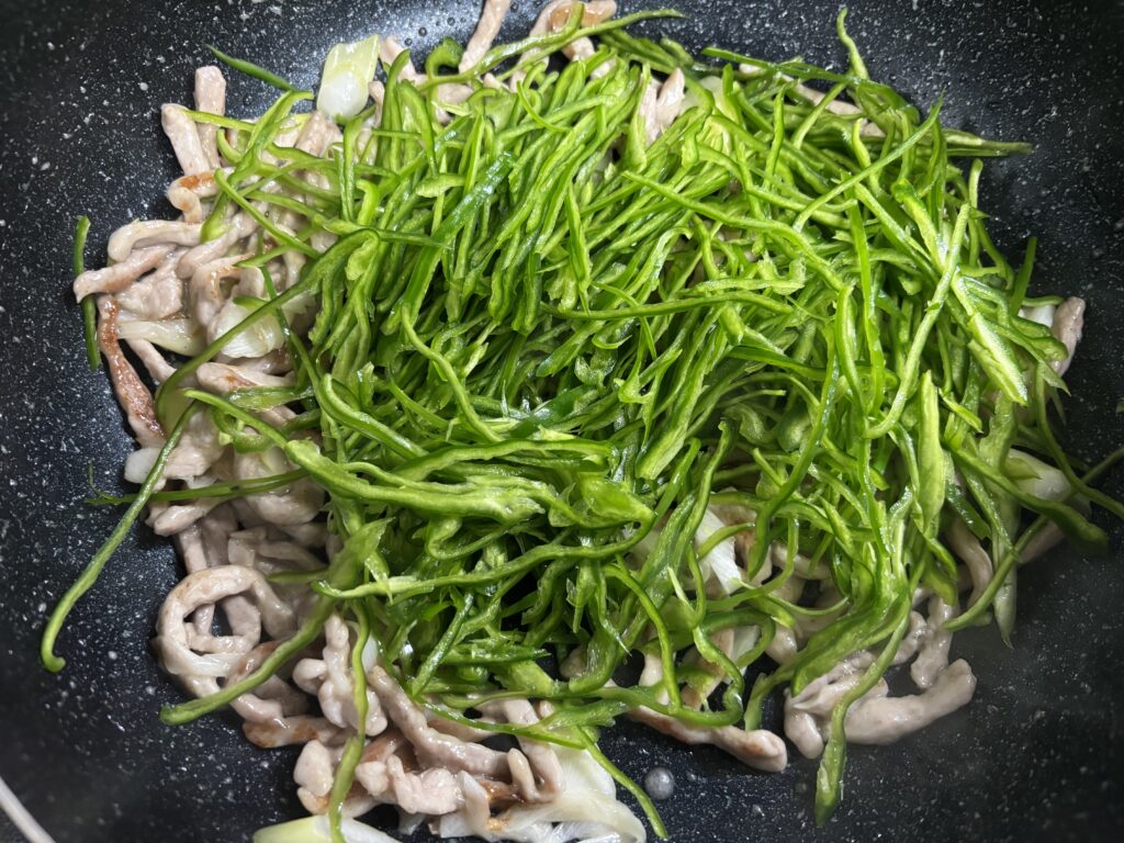- ピーマンとオイスターソースを加えて炒め合わせます。