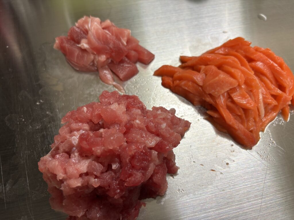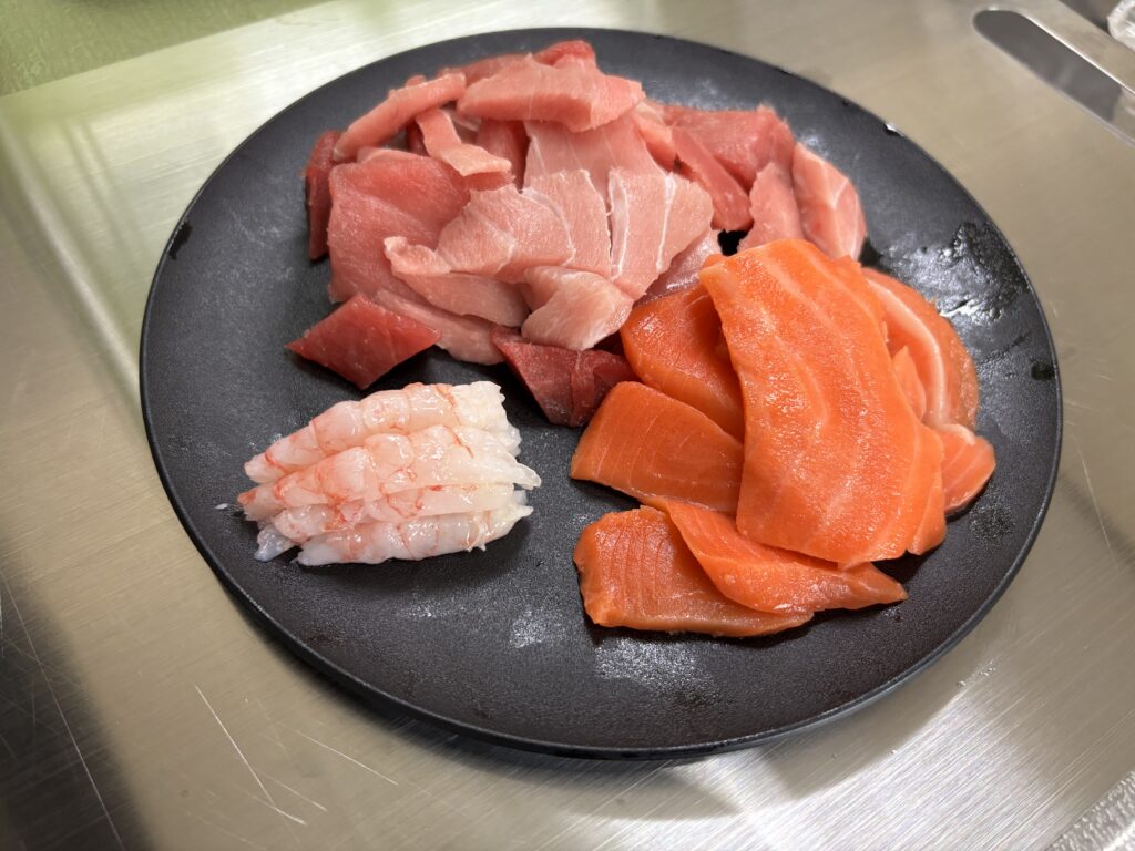 - 刺身を使うので、包丁・まな板はこまめに洗浄を。