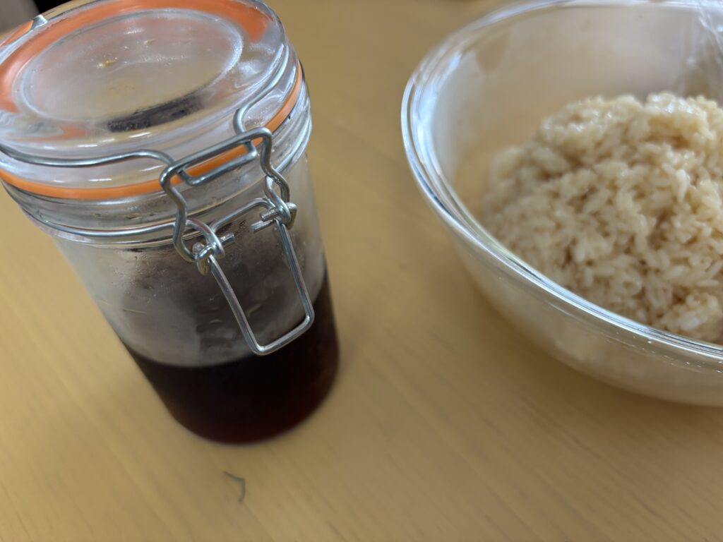 お米🌾を洗ってザルで水を切り💧、硬めに炊きます。
