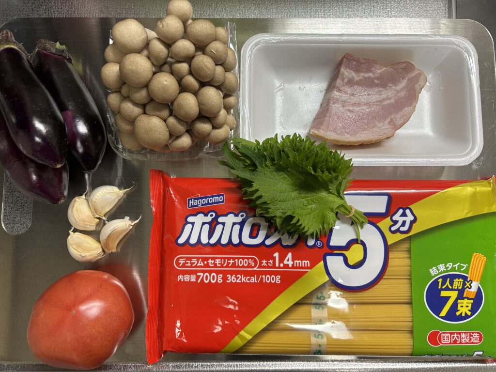 - 茄子・ベーコン・トマト・大葉、それぞれの素材の良さがぎゅっと詰まったトマトパスタ🍆🥓🍅🌿