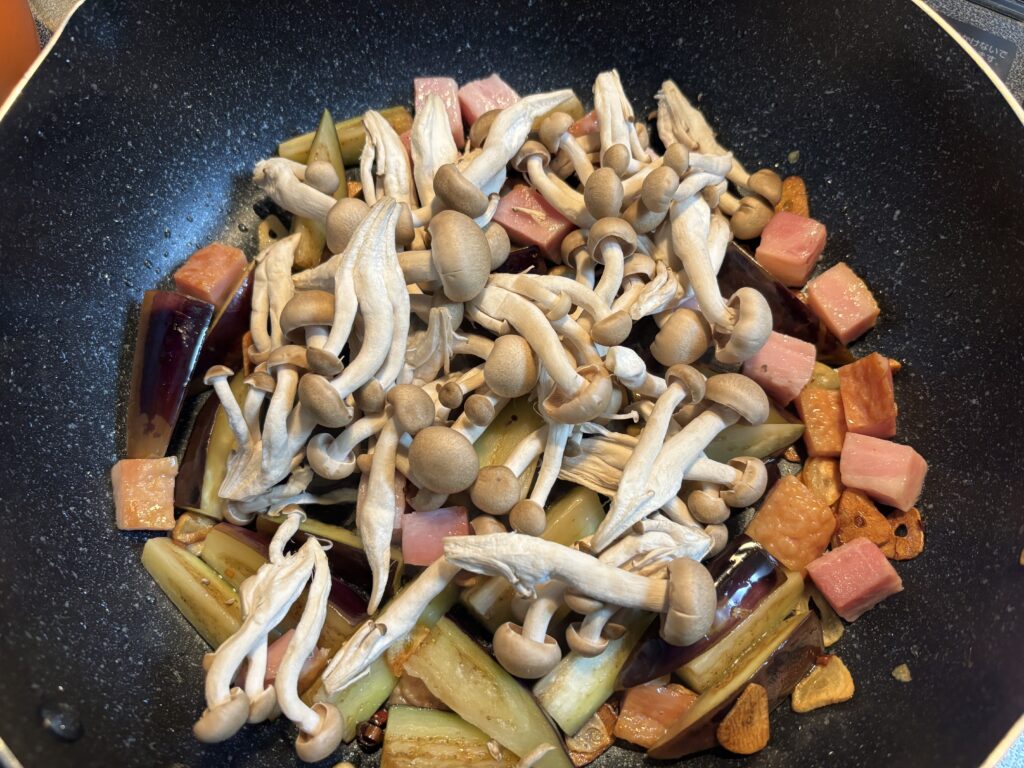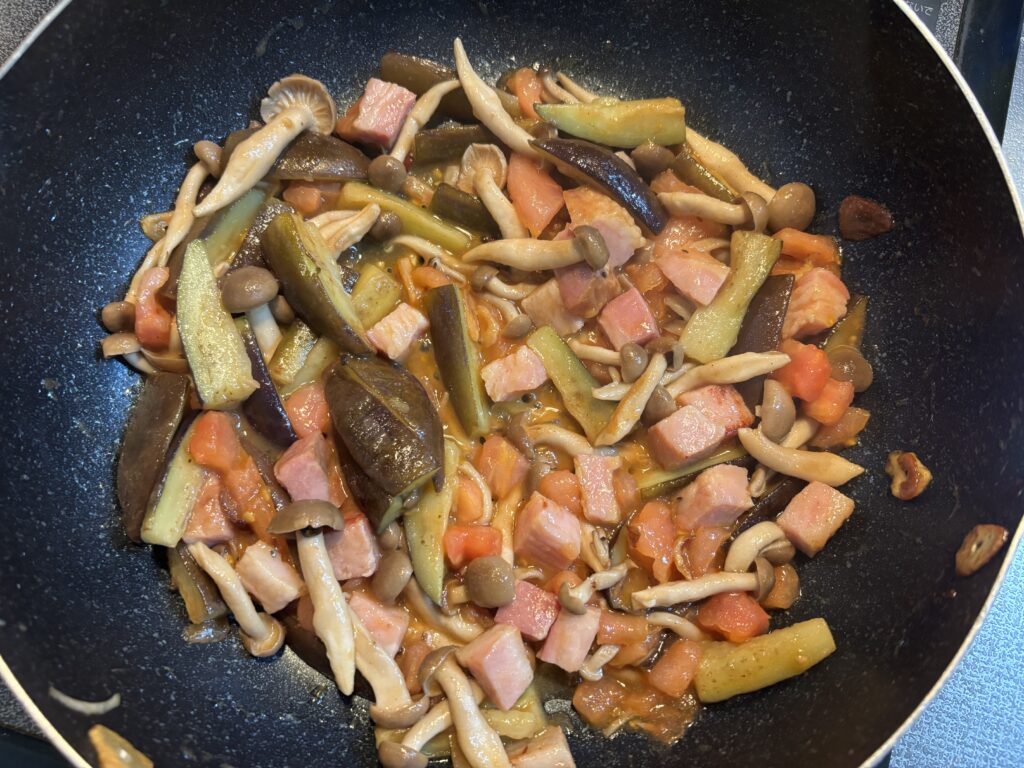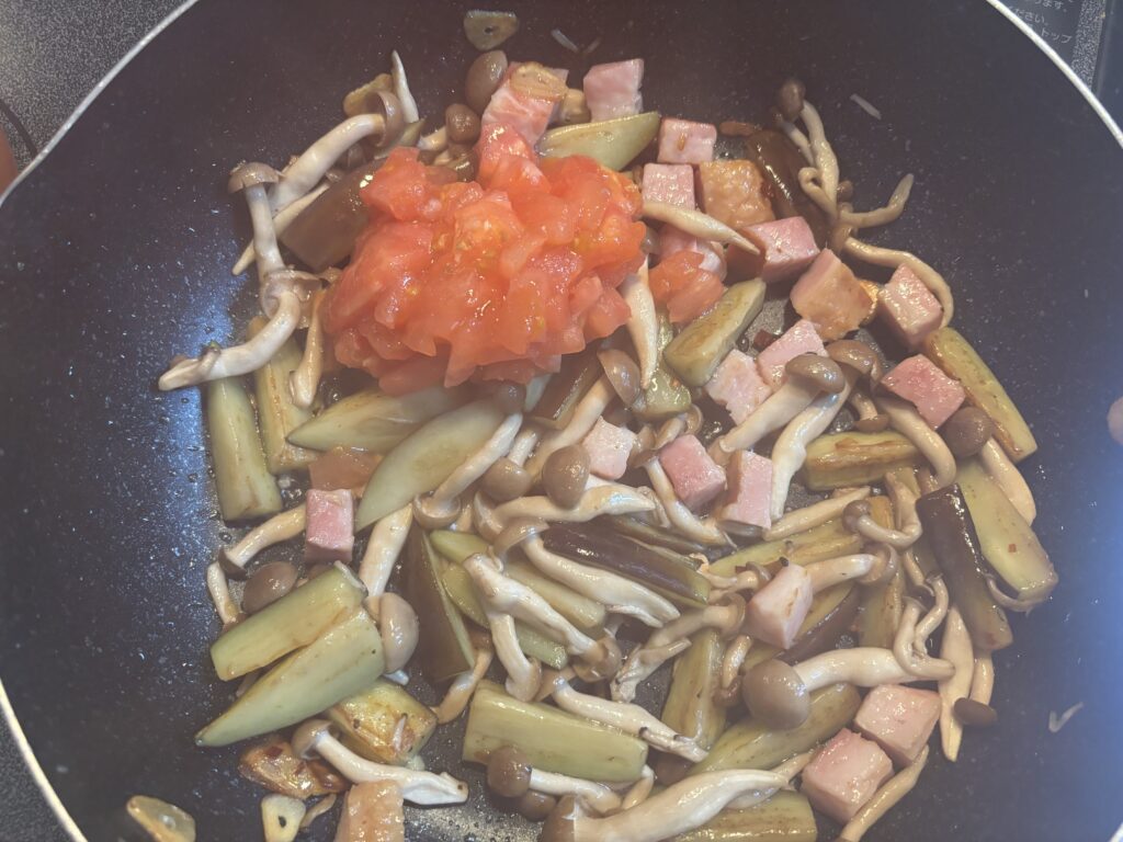③ ベーコン・茄子・しめじを炒める🍆🍄