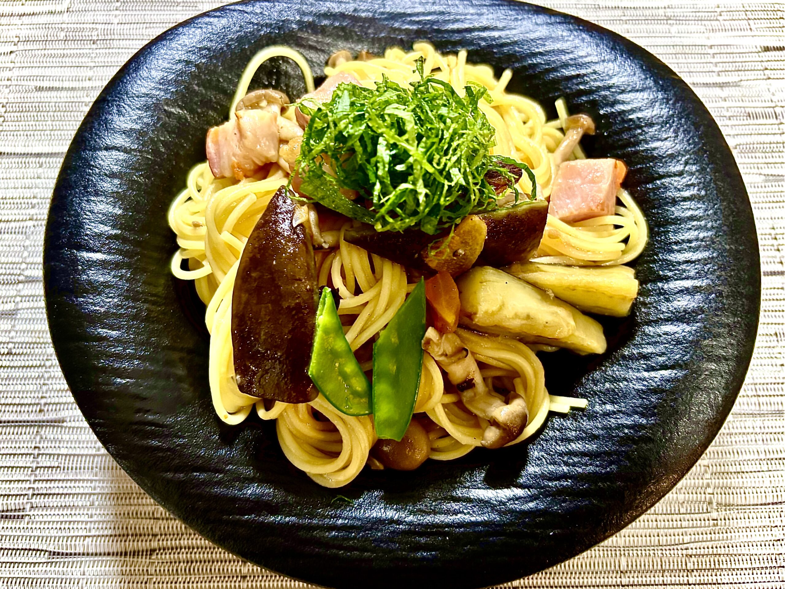 - 茄子・ベーコン・トマト・大葉、それぞれの素材の良さがぎゅっと詰まったトマトパスタ🍆🥓🍅🌿